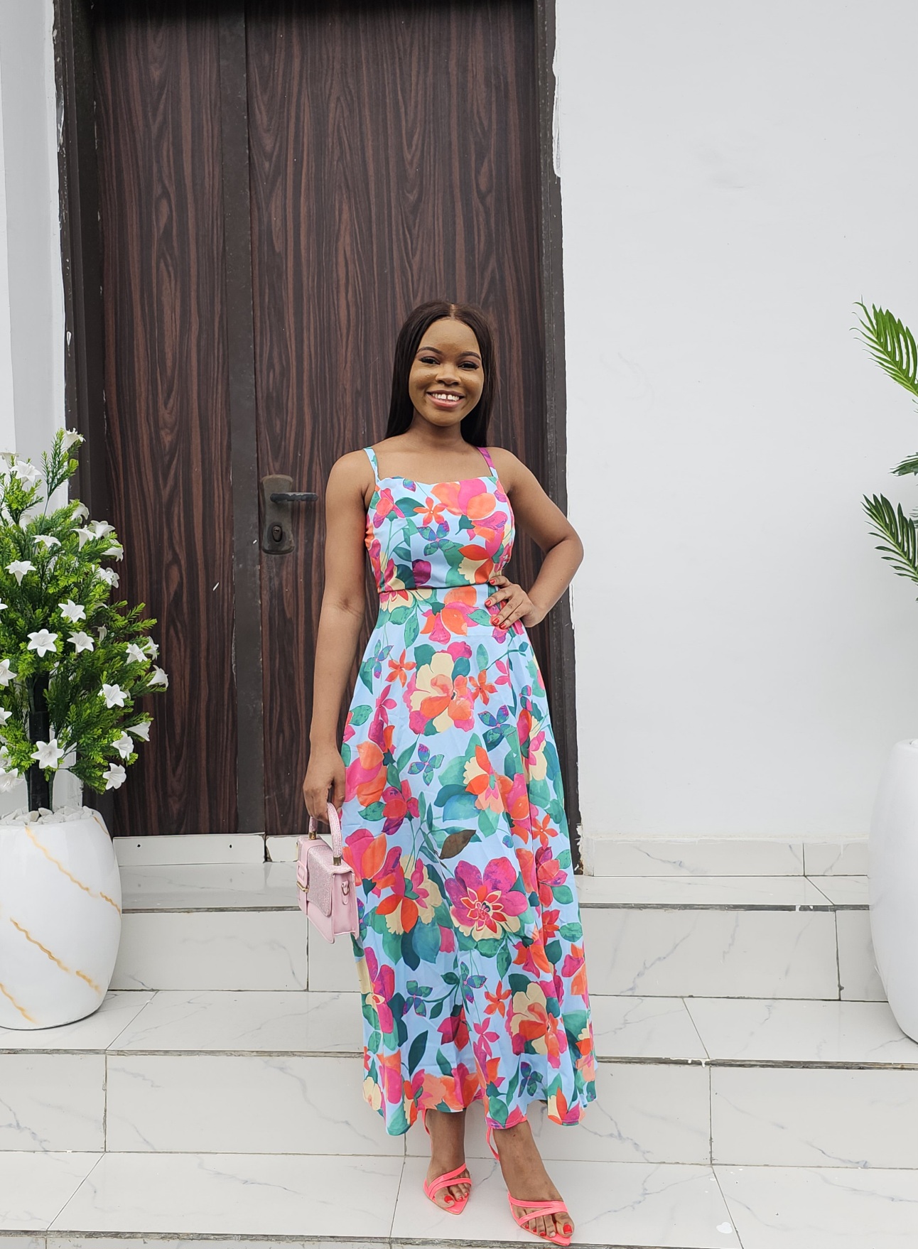 BLUE & PINK FLORAL SKATER DRESS quantity