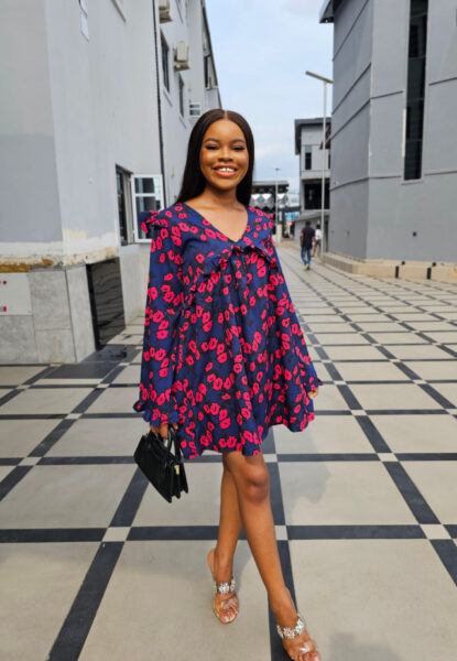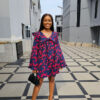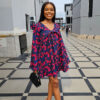 BLUE WIDE SLEEVES RUFFLE INSERT DRESS