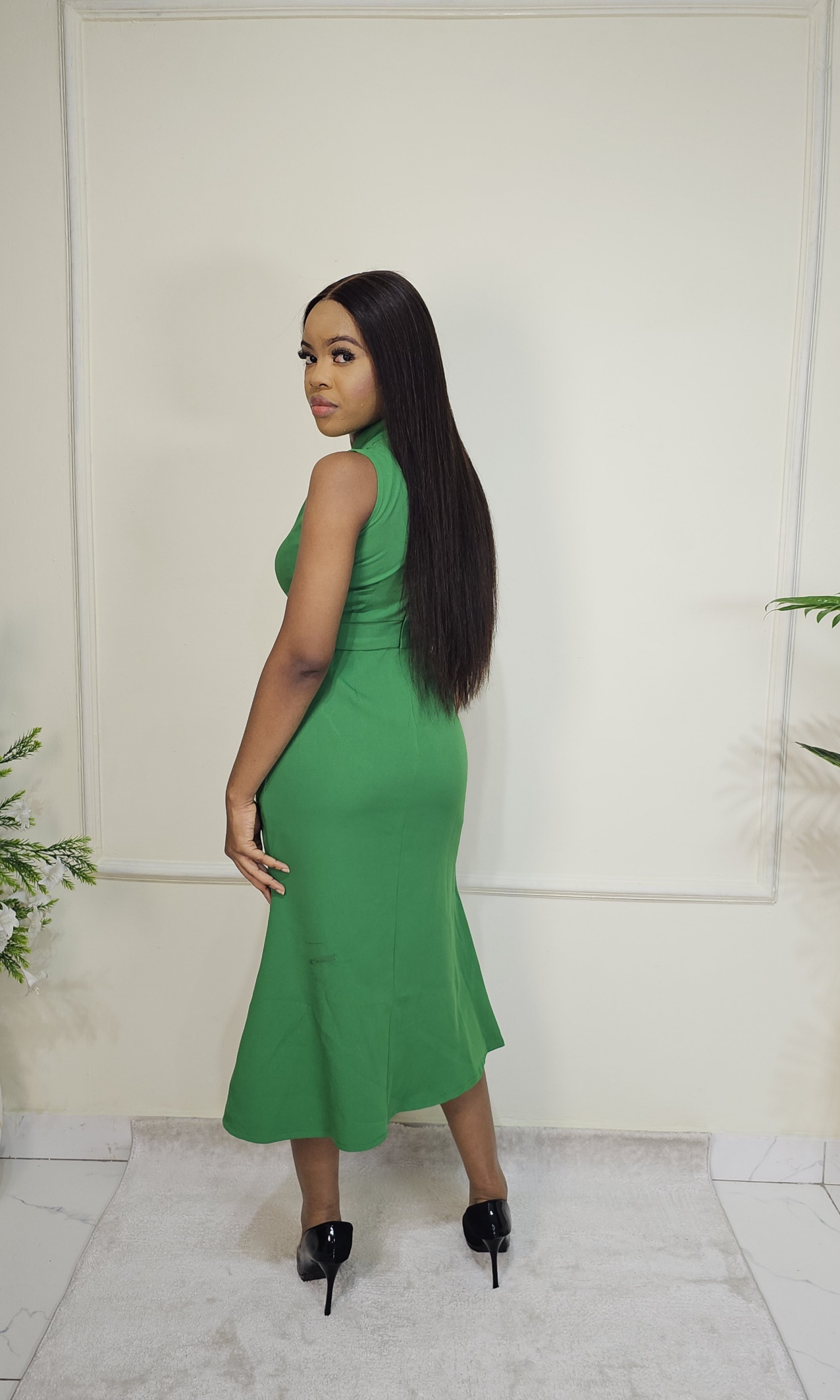 BLUE WIDE SLEEVES RUFFLE INSERT DRESS