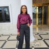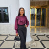 MAROON RUFFLE LONG SLEEVE V-NECK BLOUSE