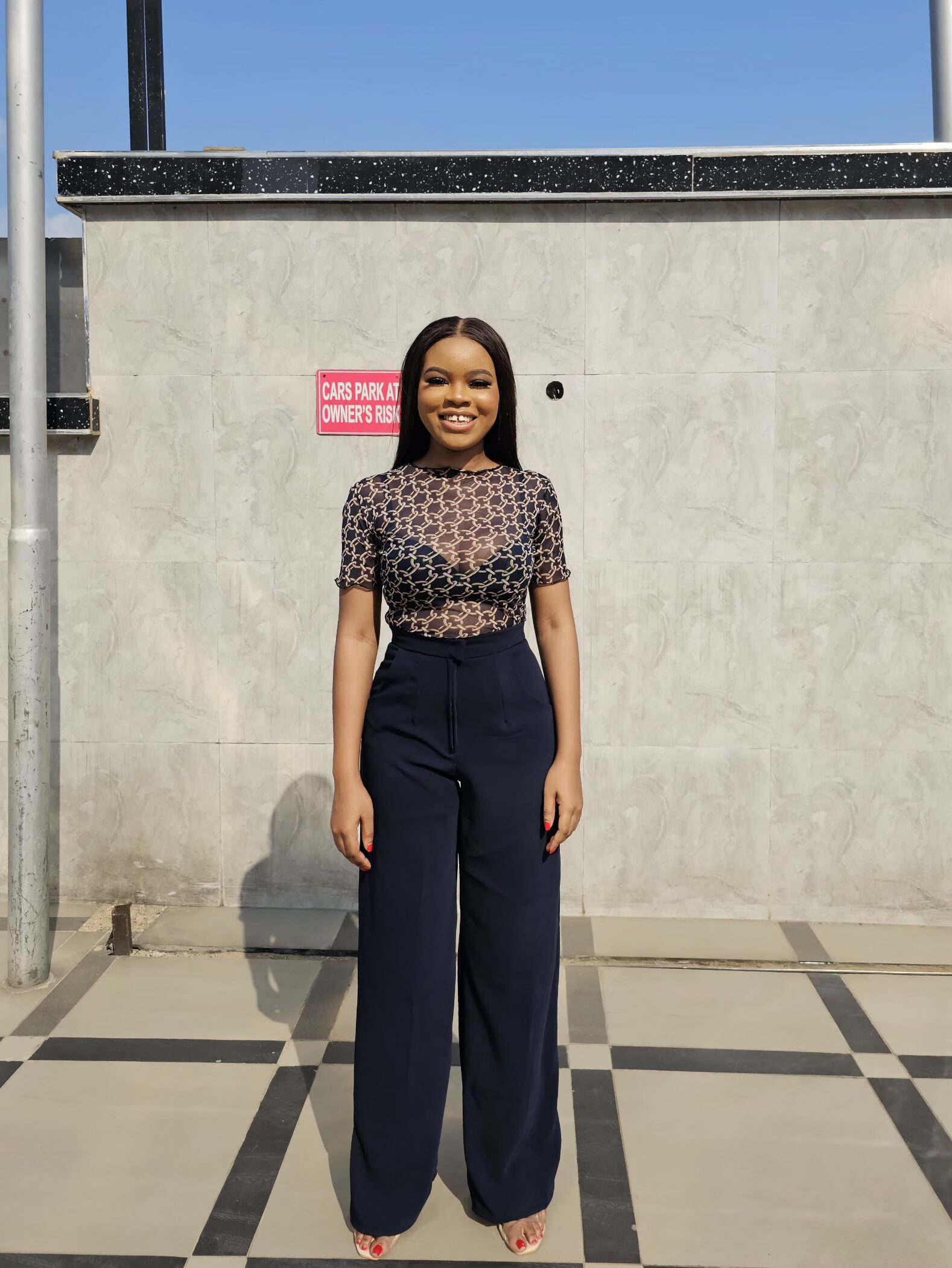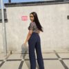 NAVY MESH PRINT CROP TOP