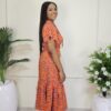 ORANGE PRINT MIDI DRESS