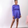 BLUE WIDE SLEEVES RUFFLE INSERT DRESS