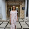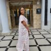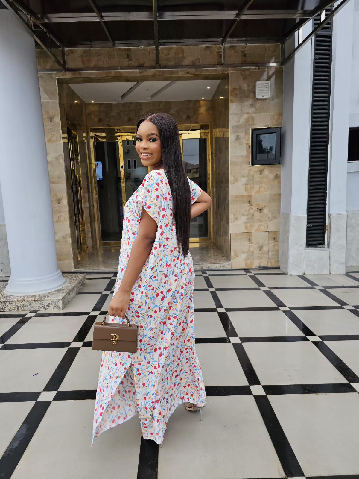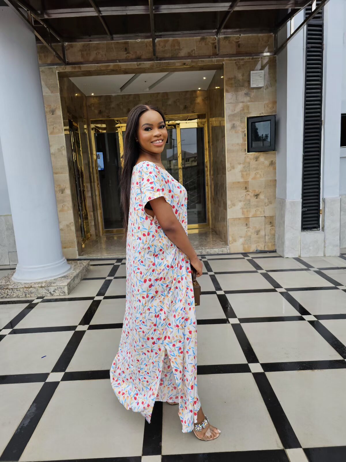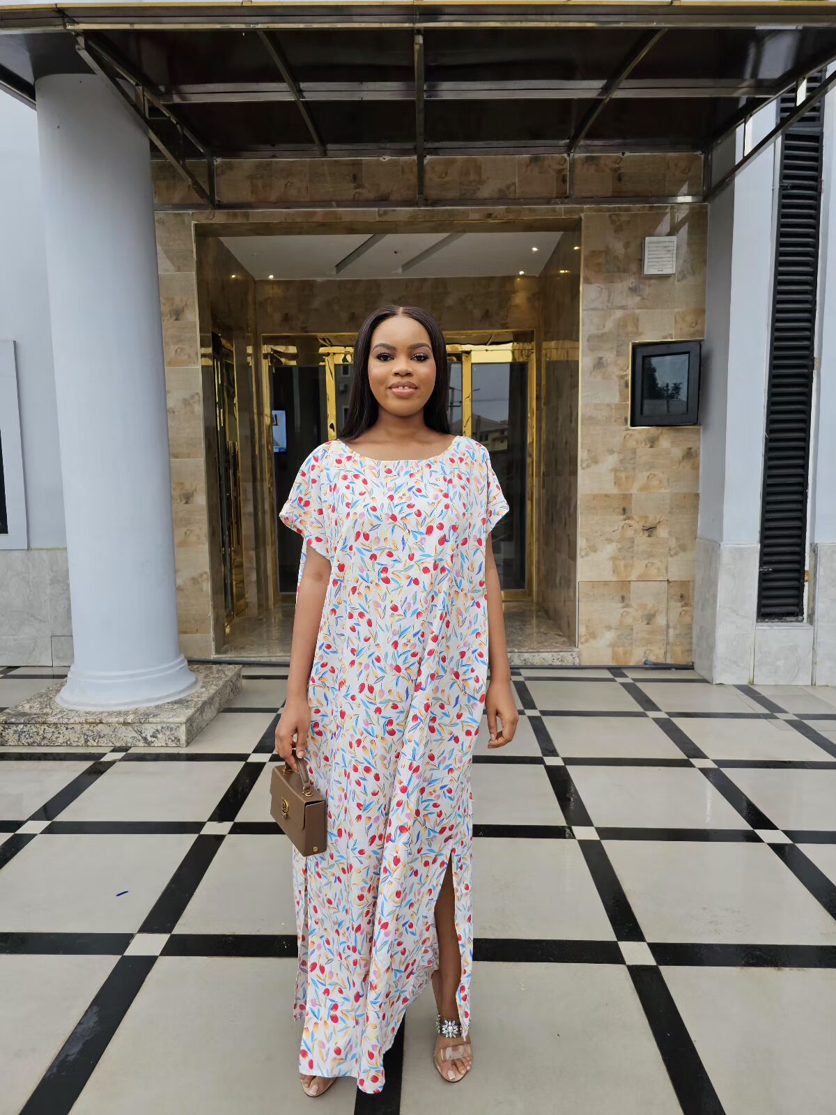 BLUE WIDE SLEEVES RUFFLE INSERT DRESS
