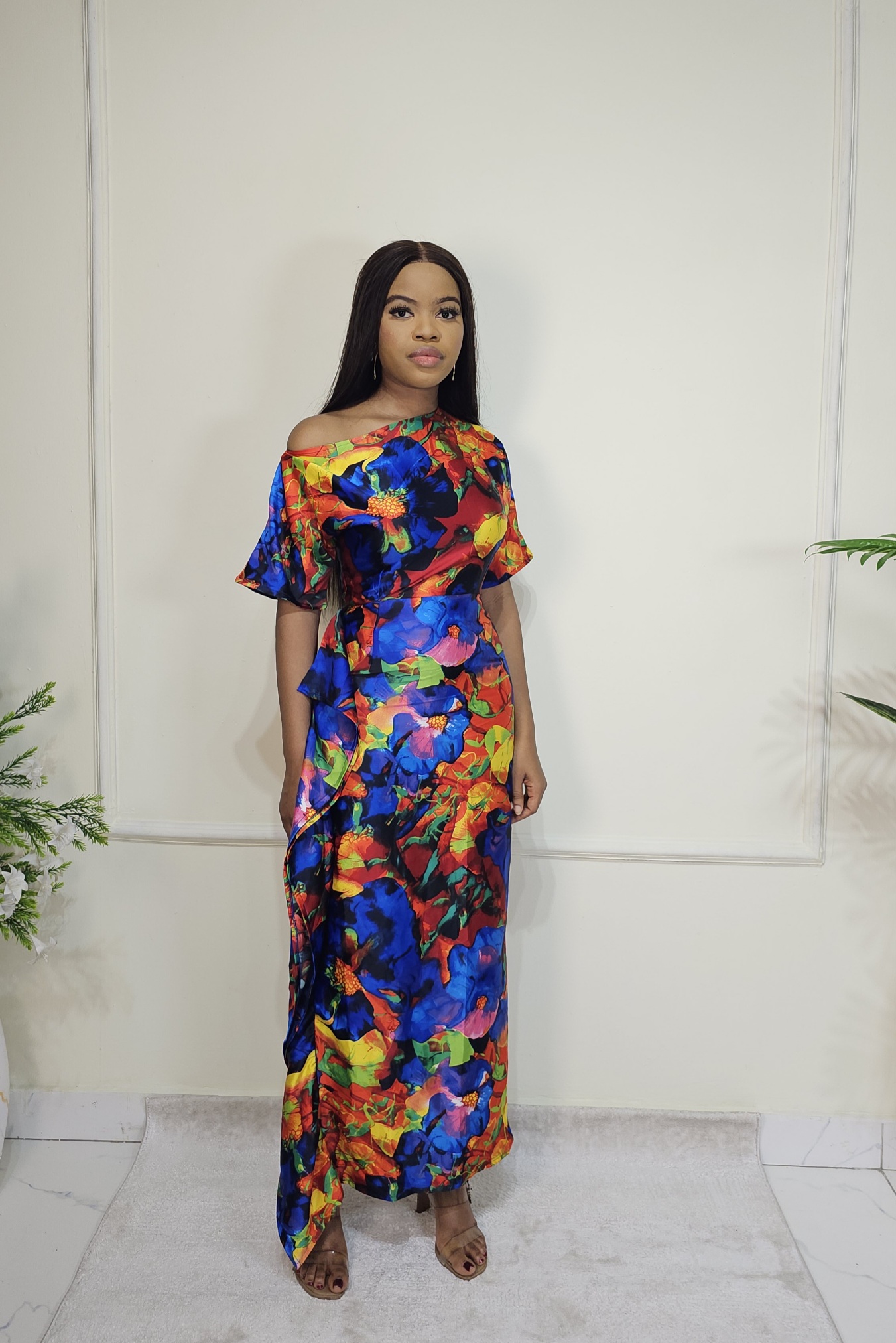 SILK FLORAL SIDE RUFFLE DRESS