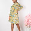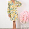 SUNFLOWER PRINT V-NECK SHIFT DRESS